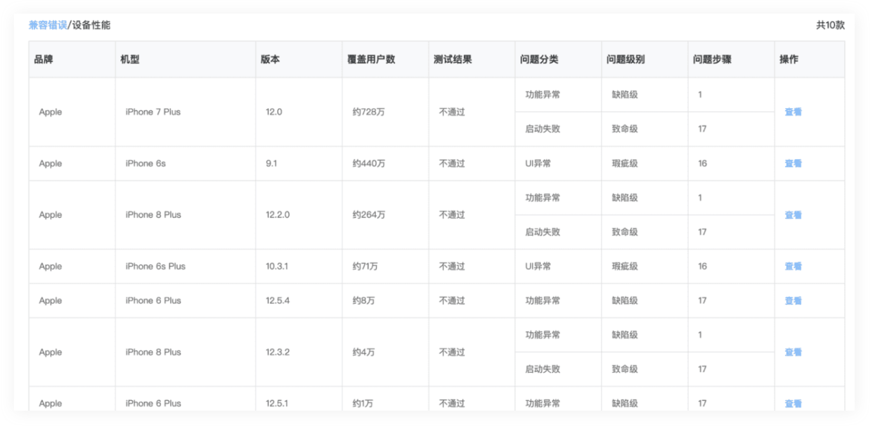 5分钟/台手机、安装/启动/Monkey Test/卸载、支持安卓&iOS兼容测试。